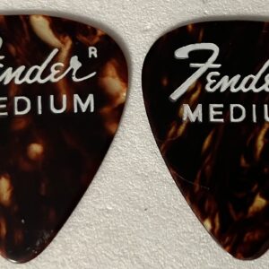 Vintage 1970s FENDER 351 Medium Gauge Guitar Picks (2) with Uncircled r trademark (Post 1968 FENDER sales to CBS) and LARGE FONT medium New Old Stock