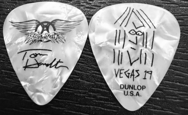 Aerosmith Guitar Pick used by Tom Hamilton during a Residency Show 2019 in Las Vegas white-pearl-pick