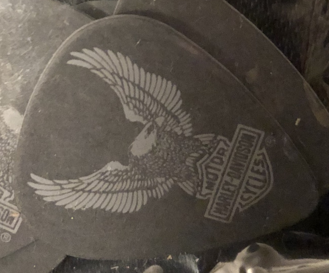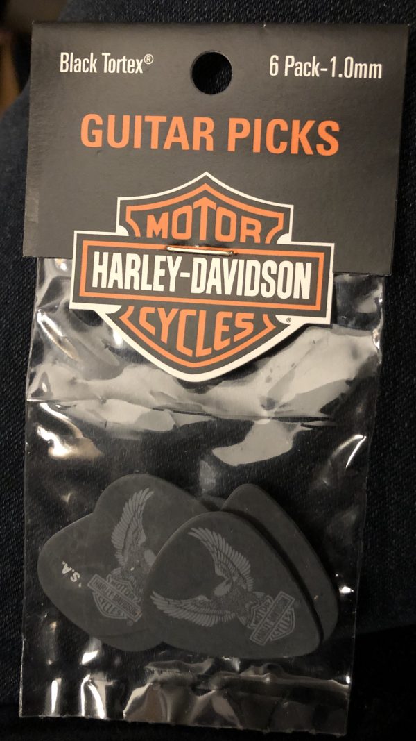 Harley Davidson Motorcycles Guitar Picks Set Eagle Logo (6) 1.0mm Black Tortex Heavy Gauge, Sealed package. Made in USA. 2005. Licensed. Out of production. Rare to find. Great gift!