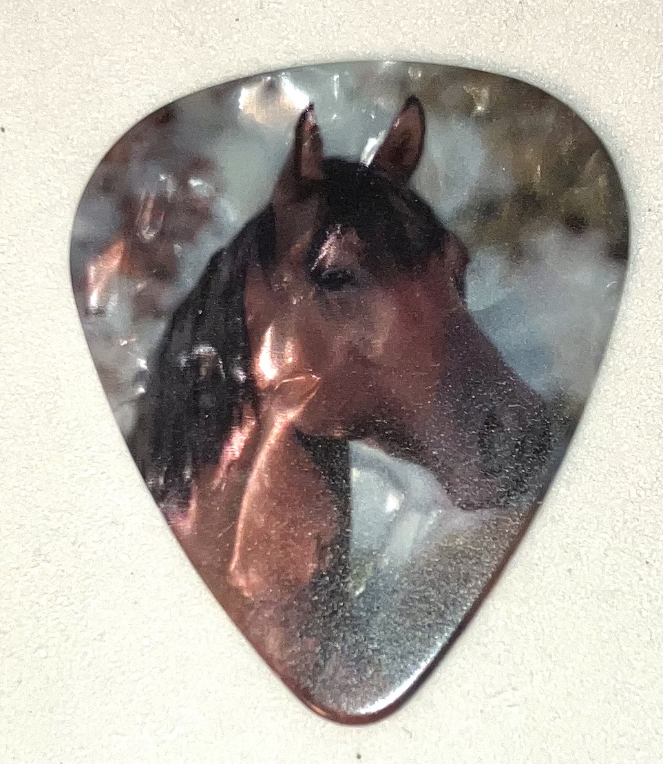 Horse (portrait face) guitar pick (Luminous on white pearl pick)