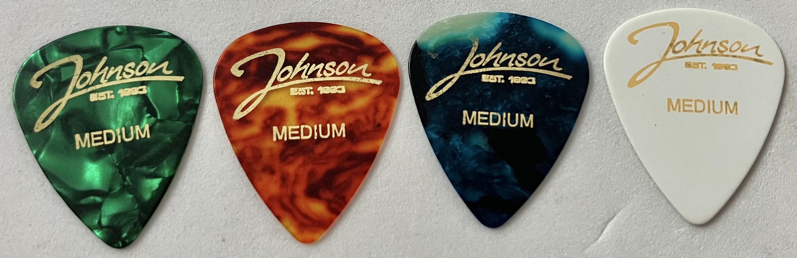 Johnson Brand Guitar Picks Set (4) Medium Gauge Gold-printing