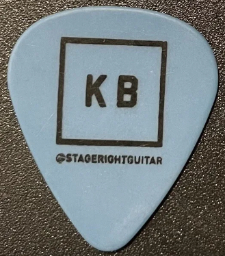 Kane Brown Guitar Pick stage-used at a show in 2022 (not sure who signature is) KB/Cat running art, blue/black