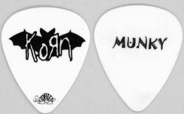KORN Guitar Pick used by James Munky Shaffer during a show on the 2010 Music as a Weapon Tour, BAT image, stage-used White/Black