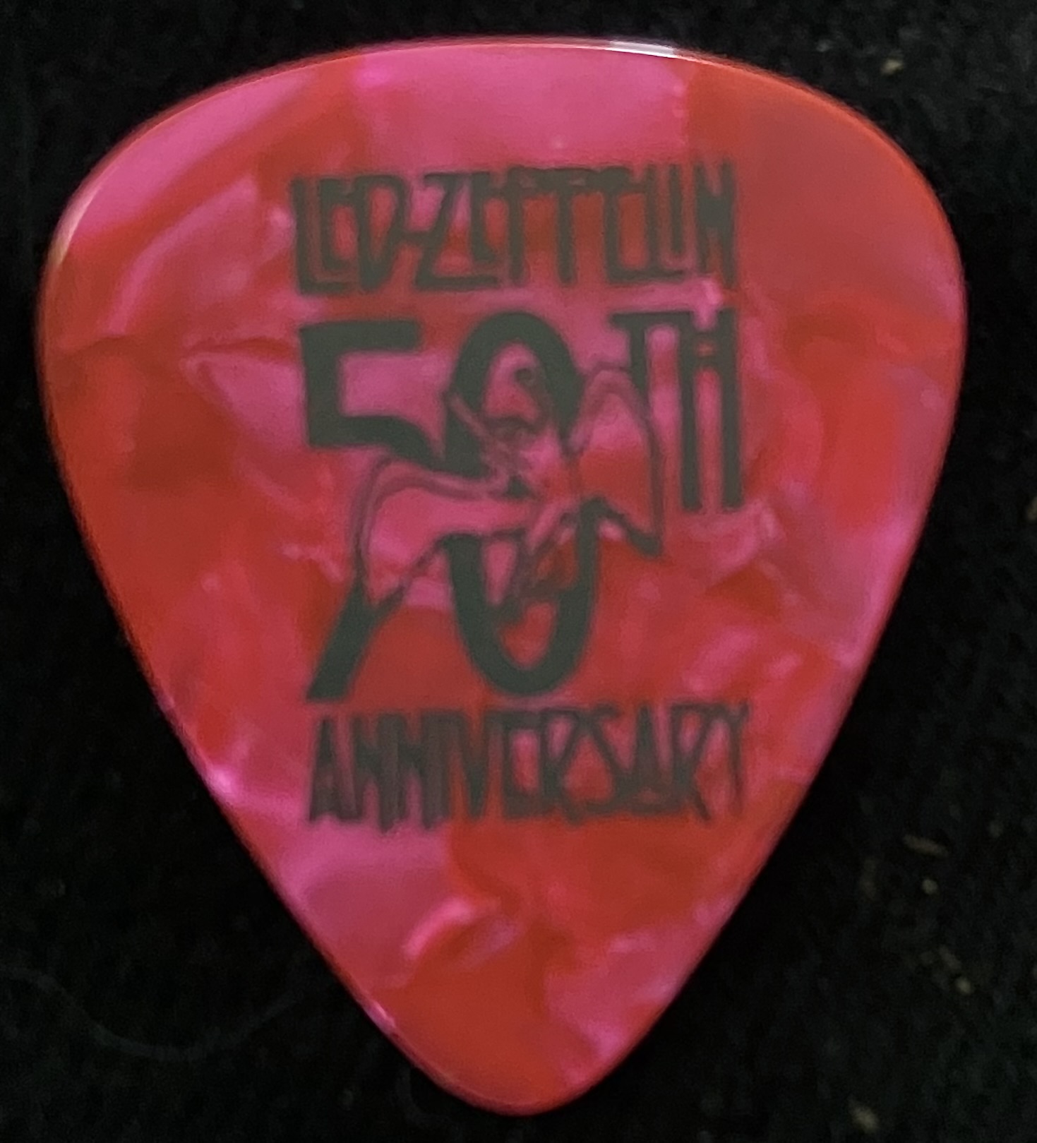 Led Zeppelin 50th Anniversary Guitar Pick from 2018, promotional item, hot-pink/black on pink pearloid pick