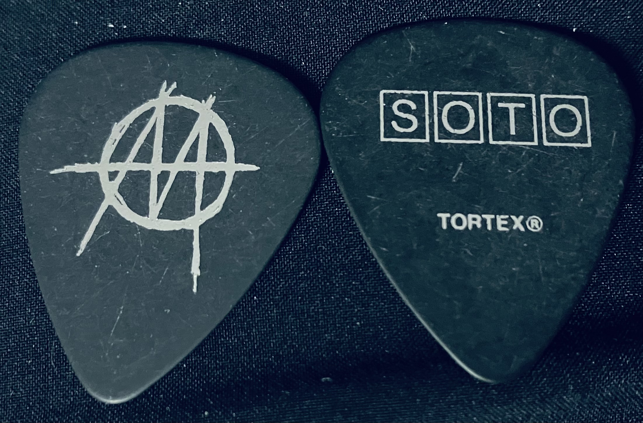 MINISTRY Guitar Pick 2025 stage-used during a show by Guitarist Cesar Soto, Tour-issued black/prism-embossed