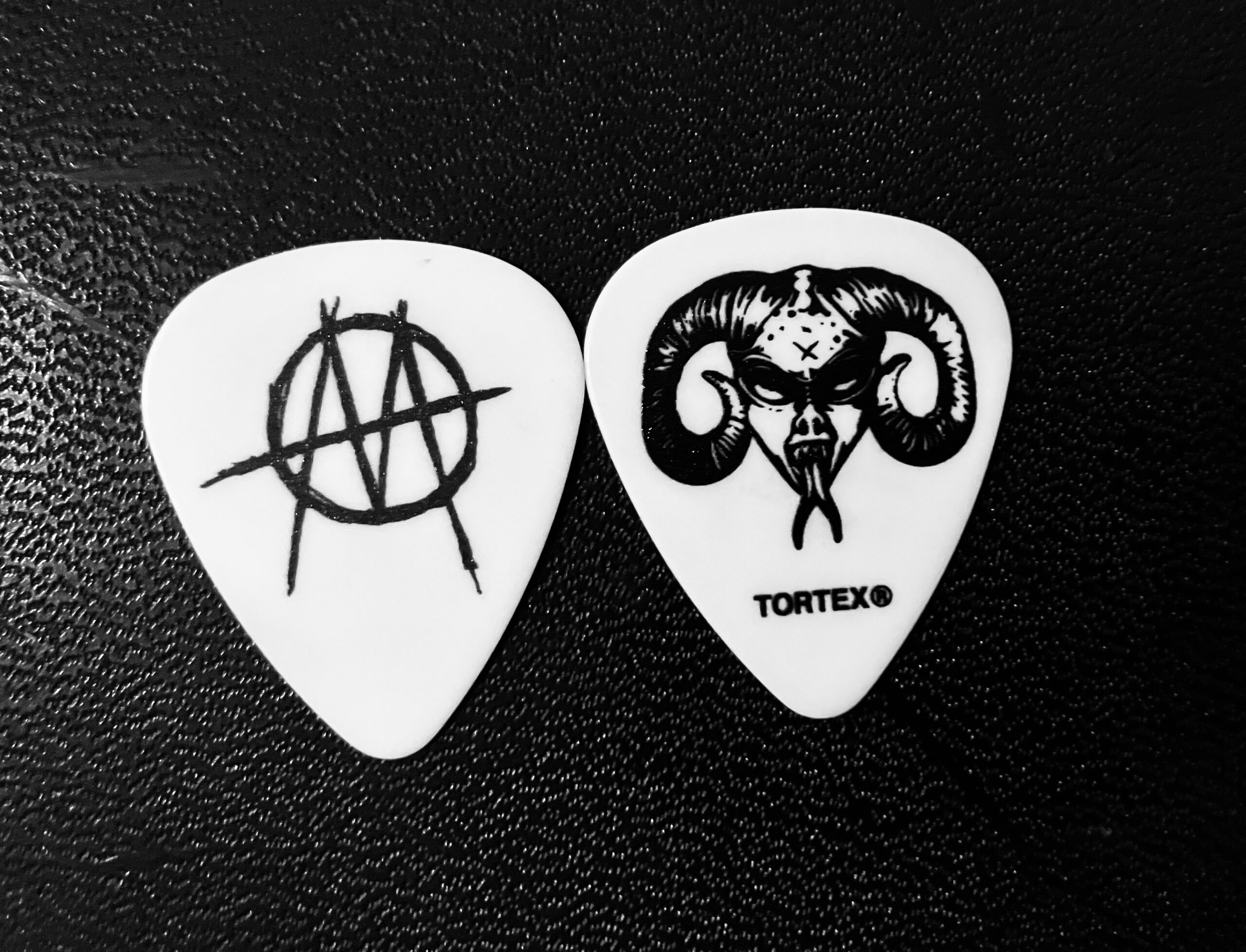 MINISTRY Guitar Pick 2025 stage-used during a show by Guitarist Cesar Soto, Tour-issued white/black horns