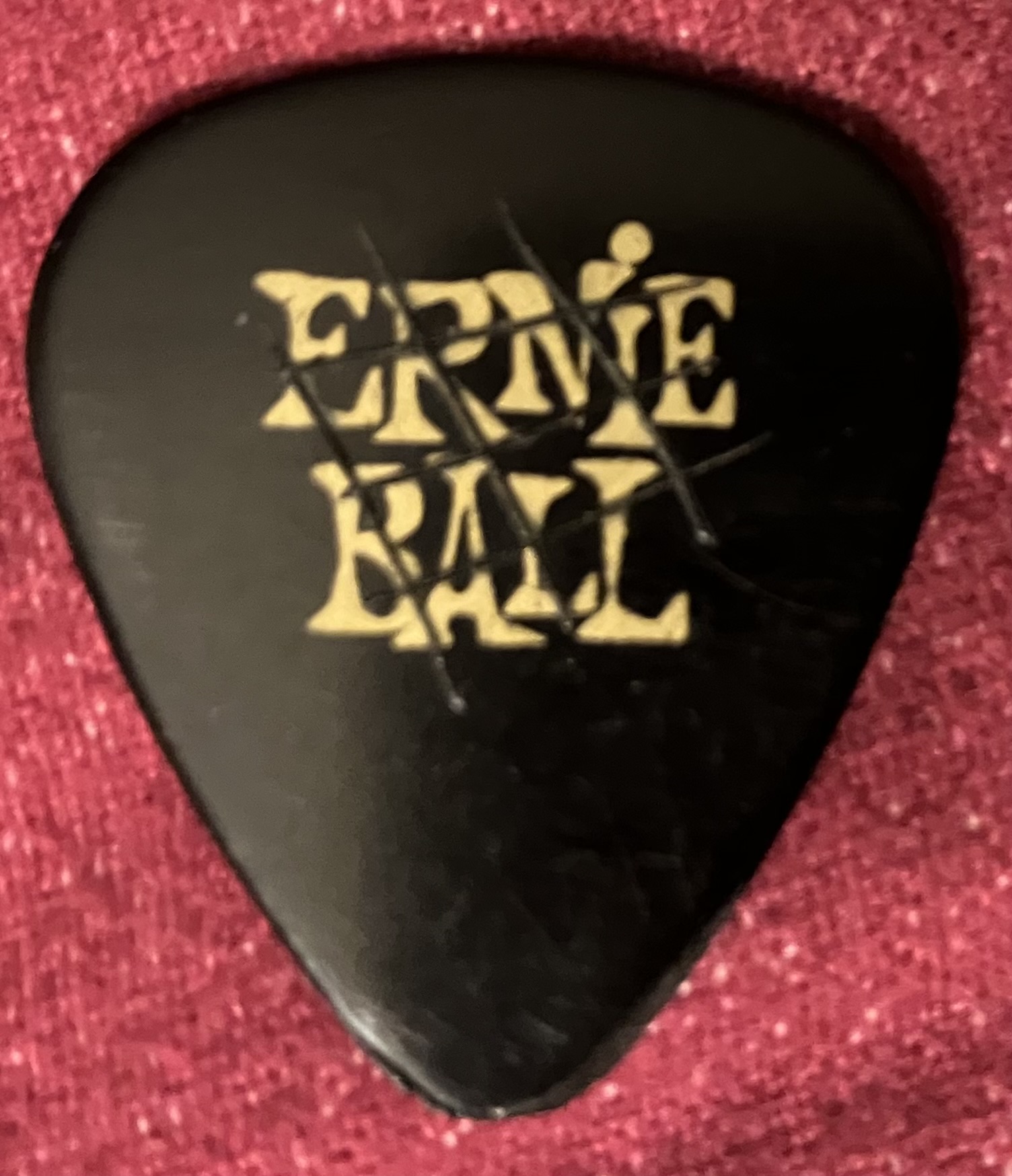 “Nile Marr” in gold/scored over the Ernie Ball logo