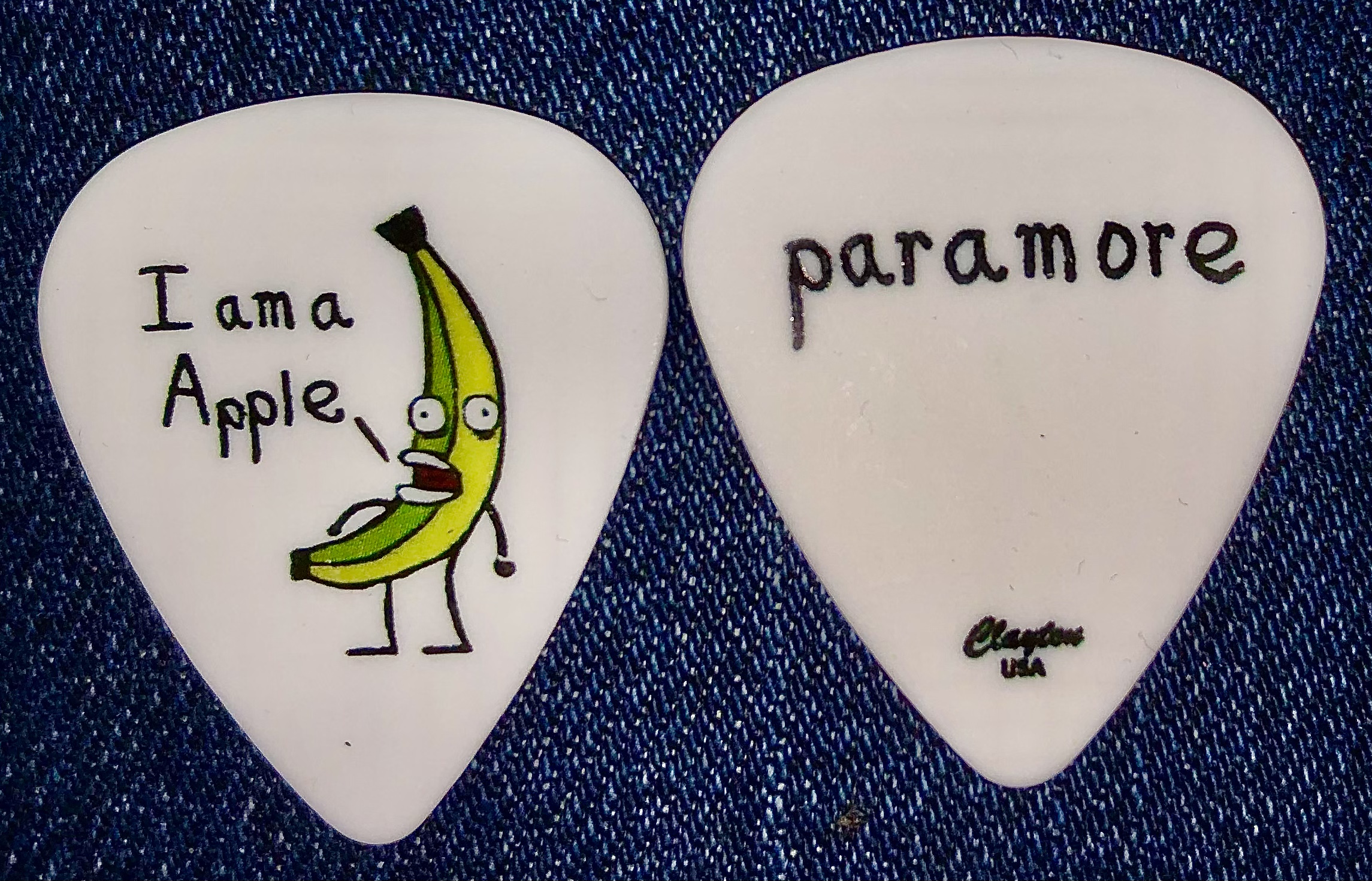 PARAMORE Guitar Pick From Jeremy Davis Bass Player Banana art “I Am A Apple”, stage used
