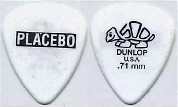 PLACEBO Guitar Pick From Brian Molko 8/27/08 Projekt Revolution Glen Helen Amphitheater, San Bernardino, California, Stage Used, White