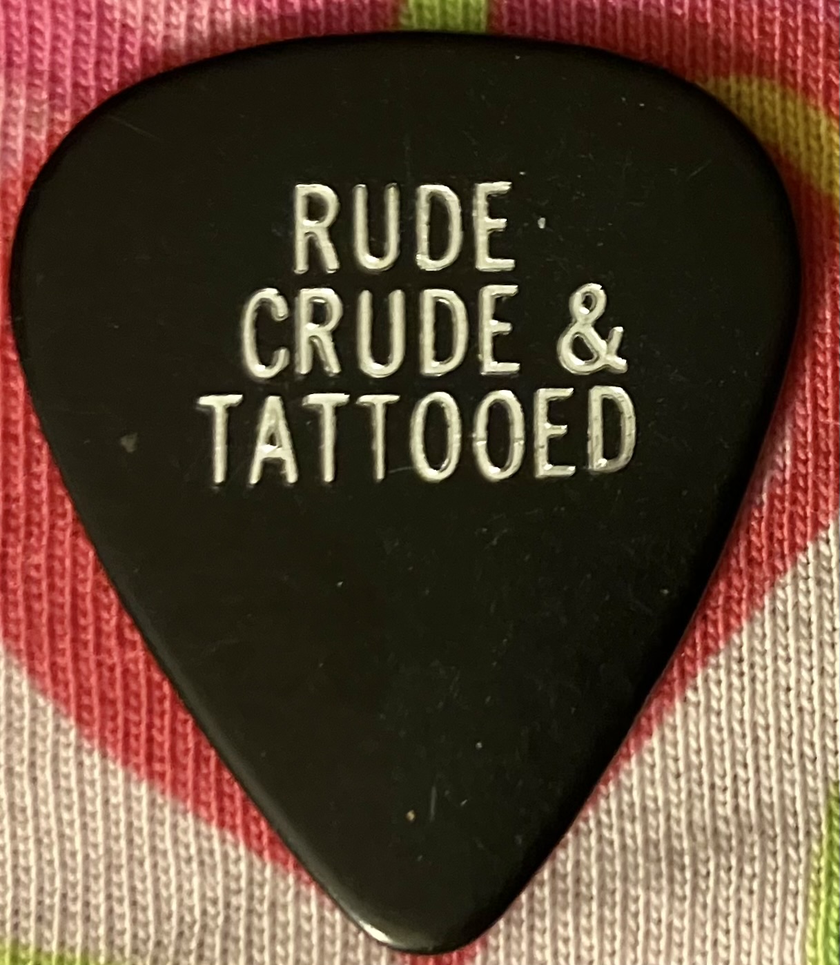 RUDE CRUDE & TATTOOED Guitar Pick “Tony G” Vintage Mystery Unknown Gold-embossed (Black)