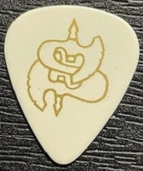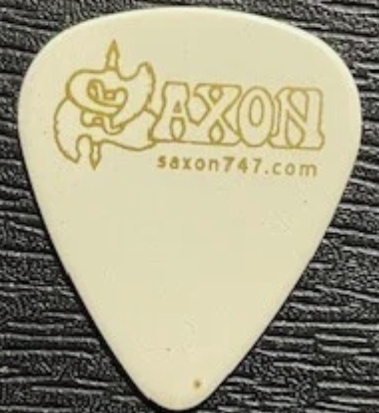 SAXON Guitar Pick from the 2013 TOUR Saxon 747 Nibbs Carter Stage-Used, cream/gold