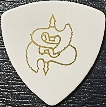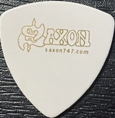 SAXON Guitar Pick from the 2013 TOUR Saxon 747 Nibbs Carter Stage-Used, white/gold wedge pick