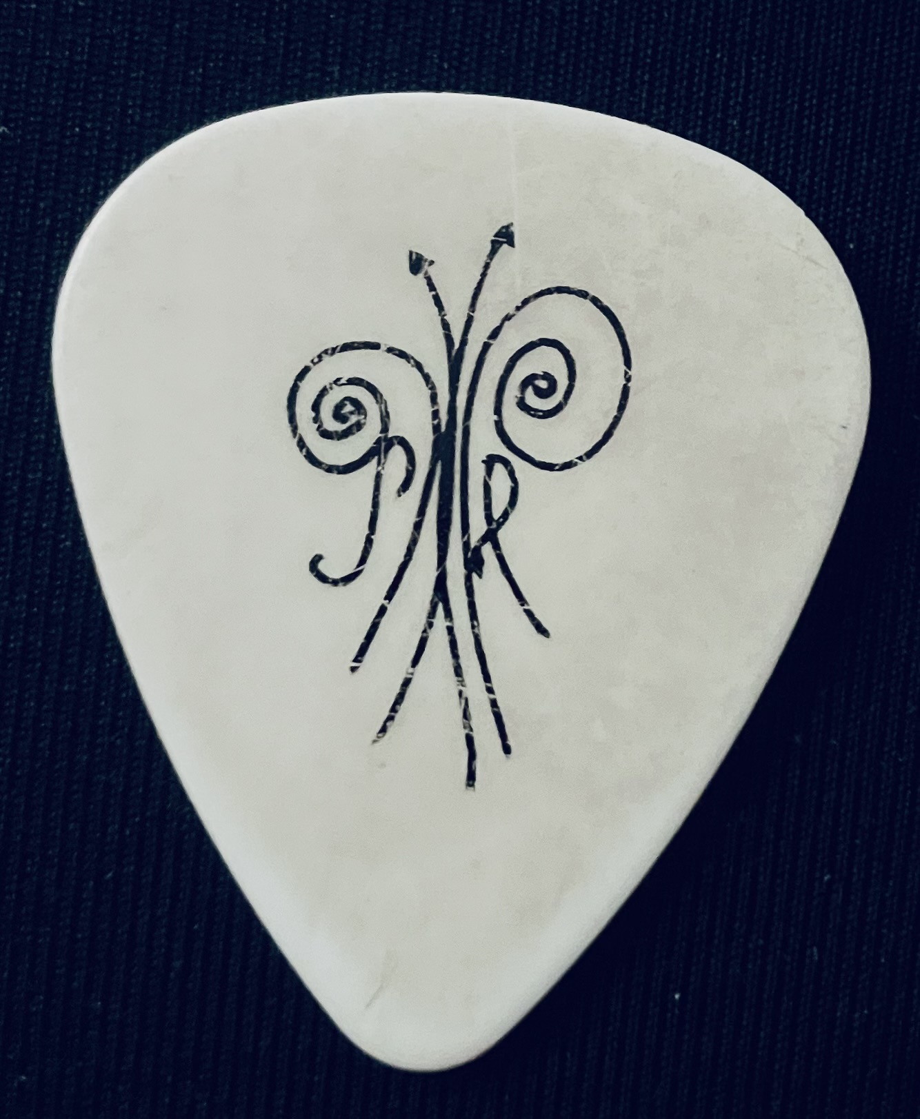 Smashing Pumpkins Guitar Pick stage-used during a show by Billy Corgan “Butterfly” on the 2010 Tour, white/black,blank back