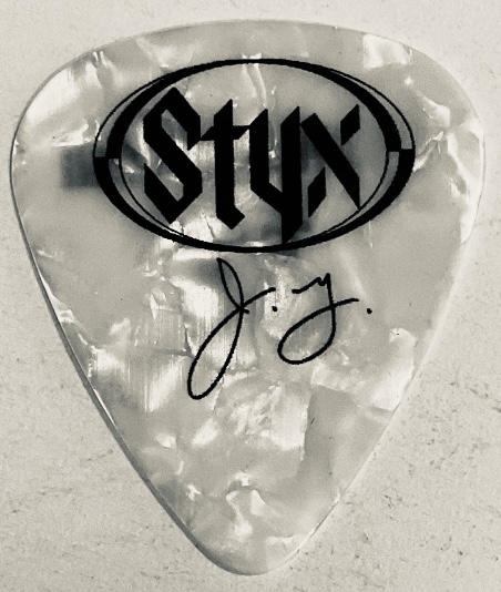 STYX Guitar Pick stage-used by James Young at a Show during the 2011 Tour, Pearl/Black