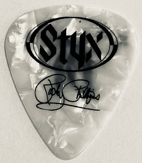 STYX Guitar Pick used by Ricky Phillips during the 2010 Tour Pearl/Black Signature