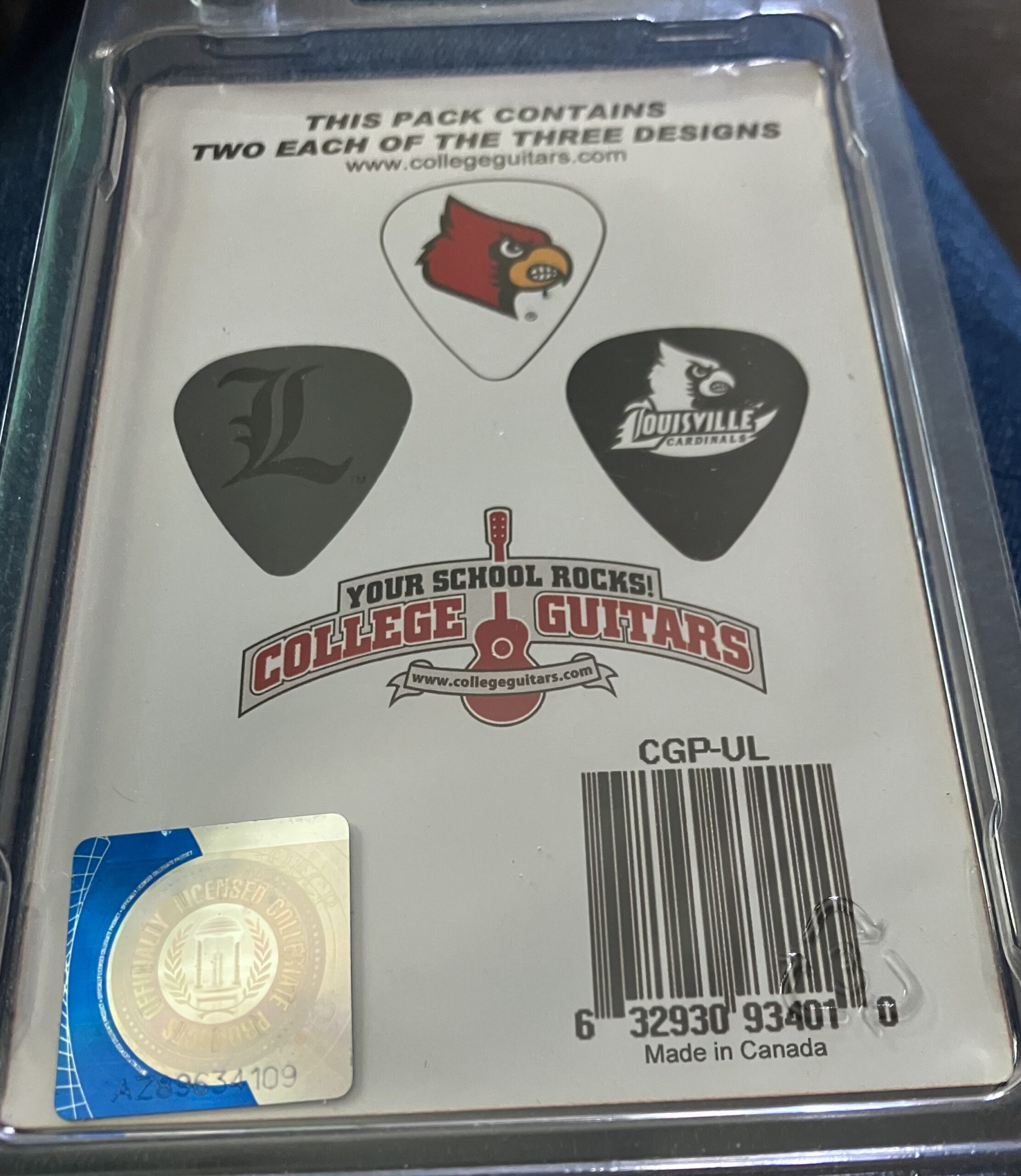 University of Louisville Cardinals Guitar Picks NCAA Set (6) licensed RARE NEW in Pkg