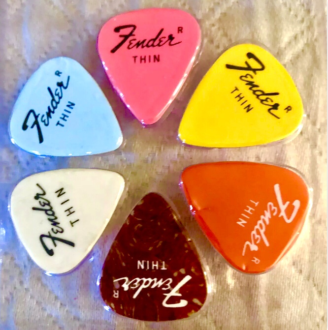 Vintage FENDER Custom Colors guitar picks THIN Uncircled tm (6) Variety colors Lot