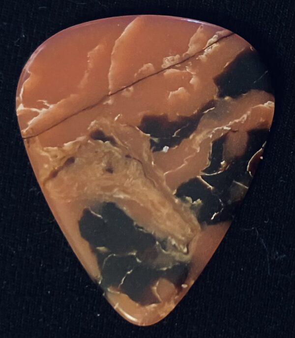 Vintage Mosaic Guitar Pick “Canyon” in Faux Marble Celluloid in salmon-color with brown marbling #P-3