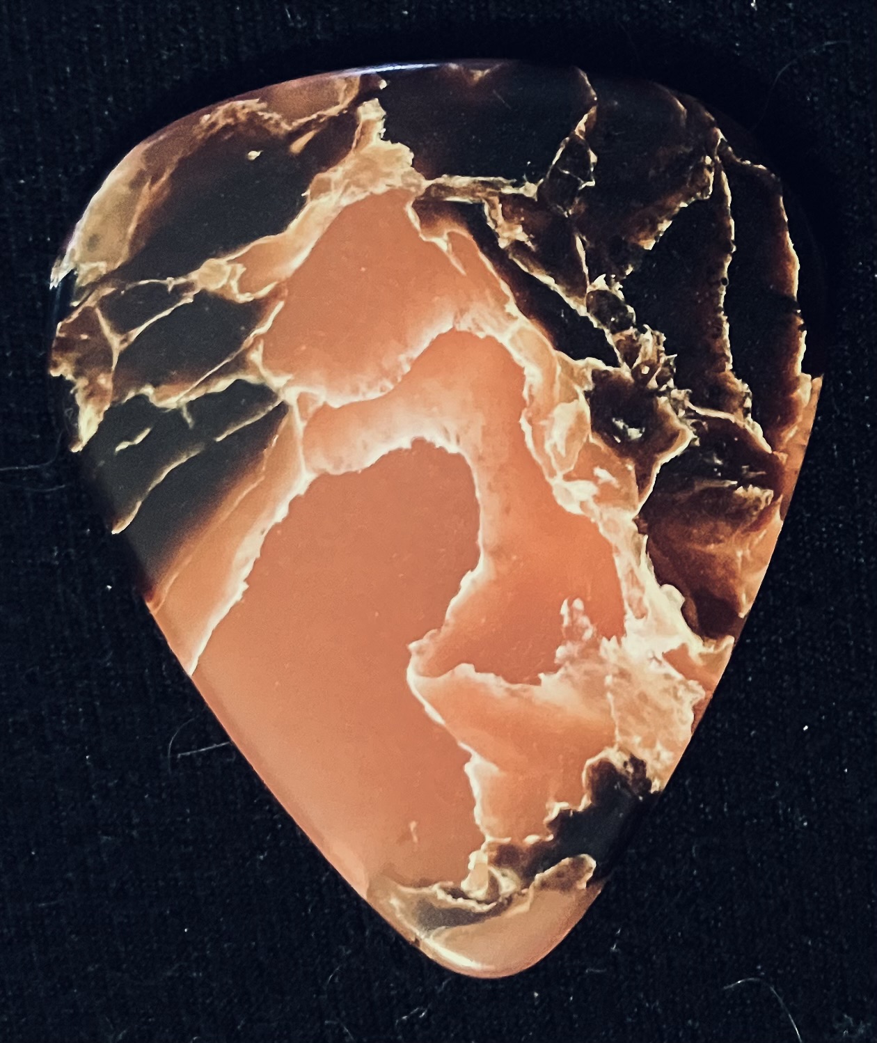 Vintage Mosaic Guitar Pick “Lava-Flow” in Faux Marble Celluloid in salmon-color with brown marbling #P-2