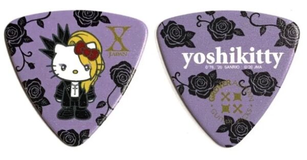 X JAPAN (band) from Yoshiki × Sanrio Hello Kitty Collab “Yoshikitty” Guitar Pick, Purple Sanrio Licensed art