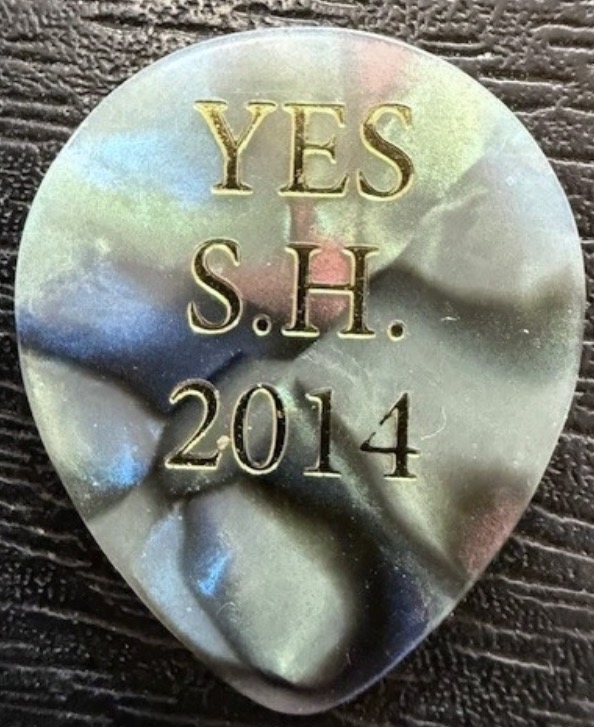 YES Guitar Pick used by STEVE HOWE in 2014 “S.H.” Vintage TOUR Pick One-Sided Gold-Embossed on faux abalone pick